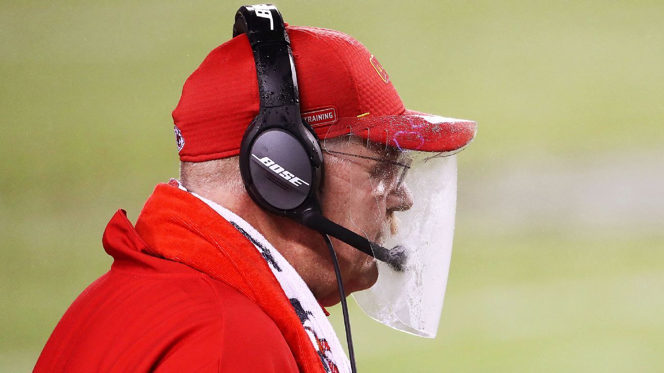 Kansas City Chiefs coach Andy Reid became a popular target for laughs, as well as social media memes, after his face shield fogged up throughout a 34-20 victory over the Houston Texans on Thursday night. NFL coaches and staff members on the sideline must wear masks during the coronavirus pandemic, and Reid chose personal protective equipment that soon became the talk of the football world.